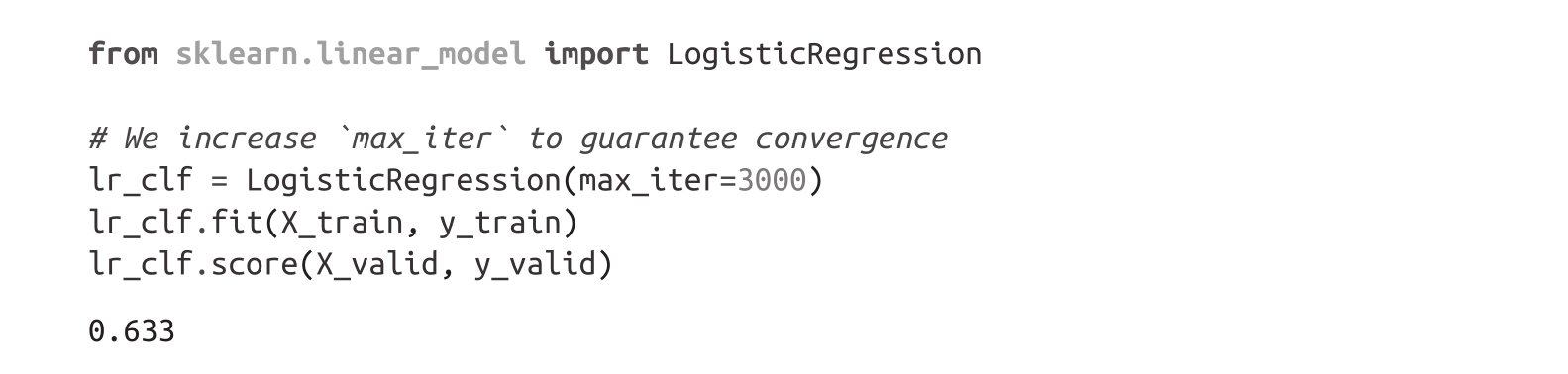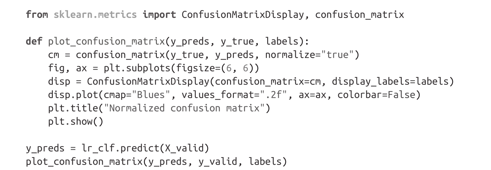 我们已经看到,不同情感的隐藏状态是不同的,尽管其中一些情感并没有明显的界限。现在让我们使用这些隐藏状态来训练一个逻辑回归模型(使用Scikit-learn)。训练这样一个简单的模型速度很快,而且不需要GPU: