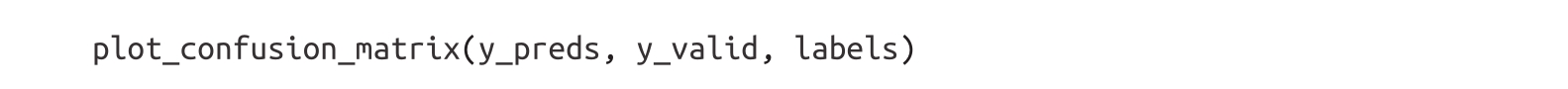 因此,使用DistilBERT嵌入的简单分类器明显优于我们的基线。我们可以通过查看分类器的混淆矩阵来进一步研究模型的性能,该矩阵告诉我们真实标注和预测标注之间的关系:
