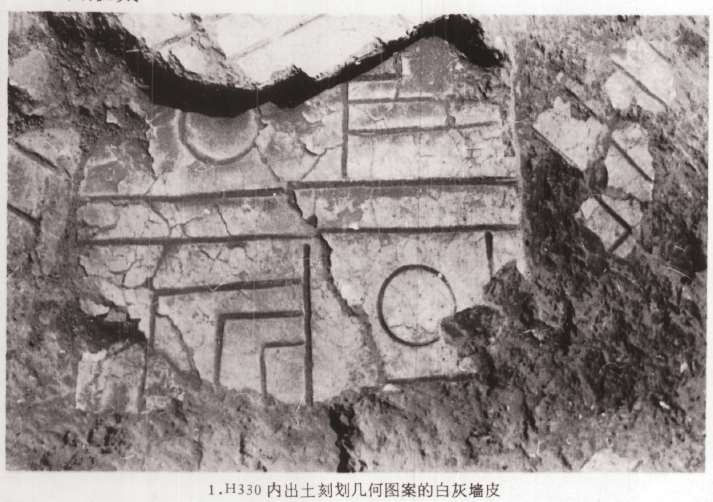 陶寺遗址位于山西襄汾陶寺村南,图为灰坑中出土的刻有几何图案的白灰墙皮。
