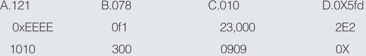 (2)下列选项中,均是合法整型字面量的是( )。