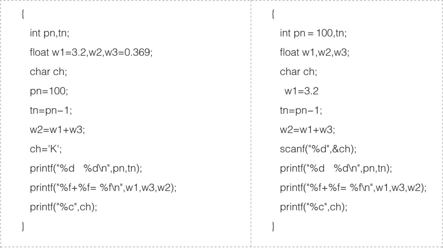 (5)为变量预置初始值有两种方法,在上面左侧的程序中找出,并进行归纳。