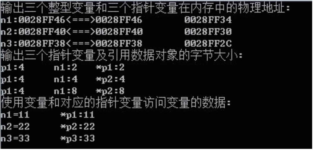 2.运行下面程序并对照程序输出结果,发现变量与内存的关系和访问变量数据值的方法。