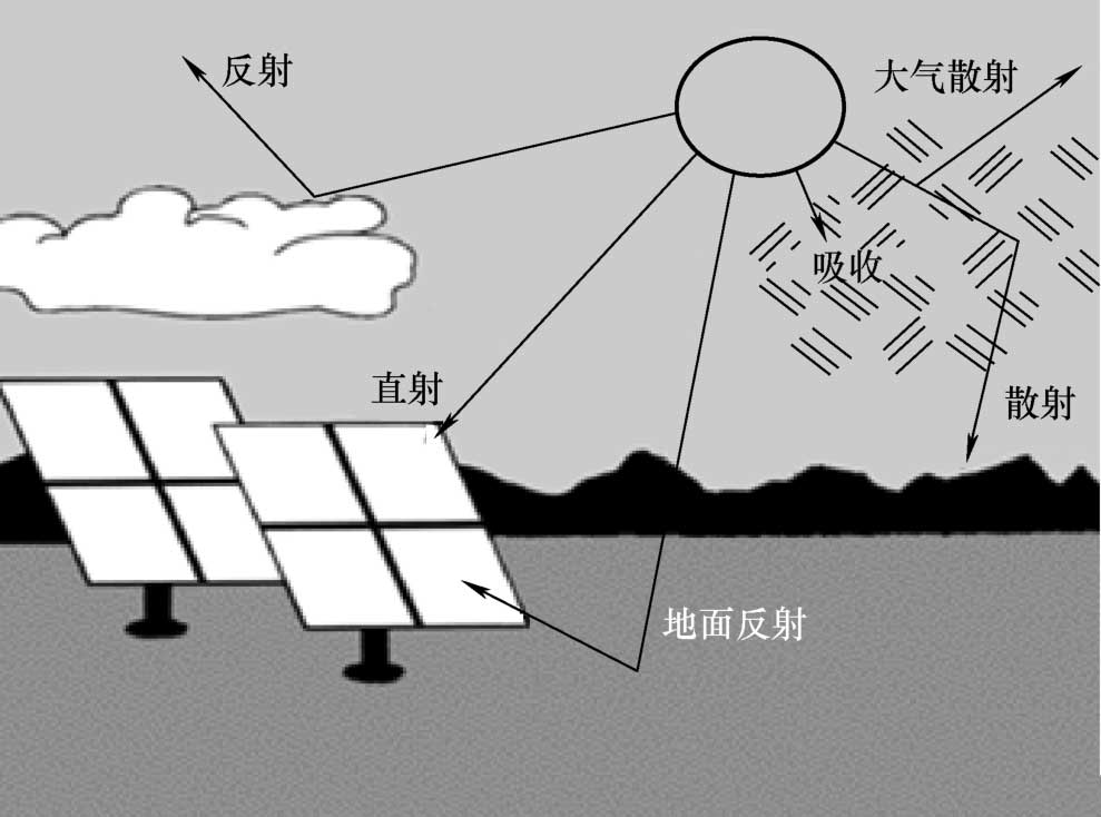 太阳辐射到达地球要经过遥远的旅程,并且还会遇到各种阻拦,受到各种影响。掌握太阳能辐射量的组成是计算和测量太阳能资源的首要条件。