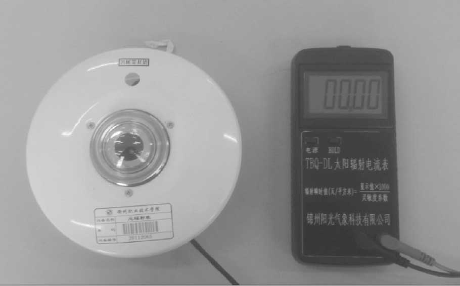 总辐射表是用来测量太阳光的水平辐射量。总辐射表采用的是热电效应原理,感应元件为绕线电镀式多接点热电堆,其表面涂有高吸收率的黑色涂层。热接点在感应面上,而冷接点则位于机体内,冷热接点产生温差电势。在线性范围内,输出信号与太阳辐射度成正比。为减小温度的影响配有温度补偿线路;为防止环境对其性能的影响,用两层石英玻璃罩,石英玻璃罩是经过精密的光学冷加工磨制而成的。