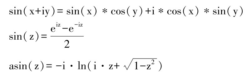 注意:sin(pi)并不是零,而是与浮点精度有关的无穷小量eps,因为pi仅仅是精确值π浮点近似的表示值而已;对于复数z=x+iy,函数的定义为: