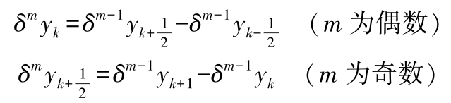m 阶向后差分:Δ m y k =Δ m -1 y k -Δ m -1 y k -1