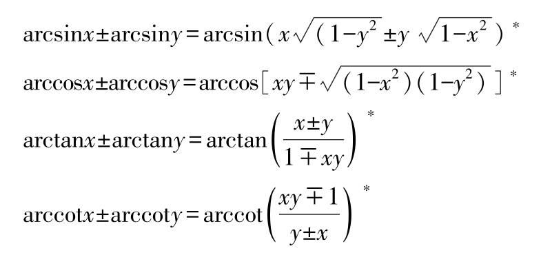 (*上面四等式左边两角之和与差在主值范围内取值时,等式成立)