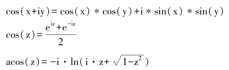 注意:cos(pi/2)并不是零,而是与浮点精度有关的无穷小量eps,因为pi仅仅是精确值π浮点近似的表示值而已;对于复数z=x+iy,函数的定义为: