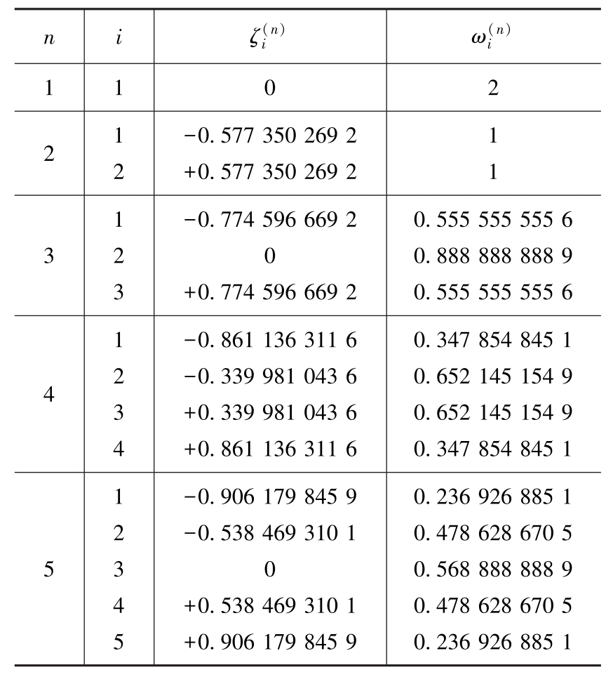 (4)近似积分 近似积分法主要有根据积分中值定理的一般公式、牛顿一柯茨插值型求积公式(内插求积公式)和高斯积分法,这里主要介绍高斯积分法和一维高斯积分公式。