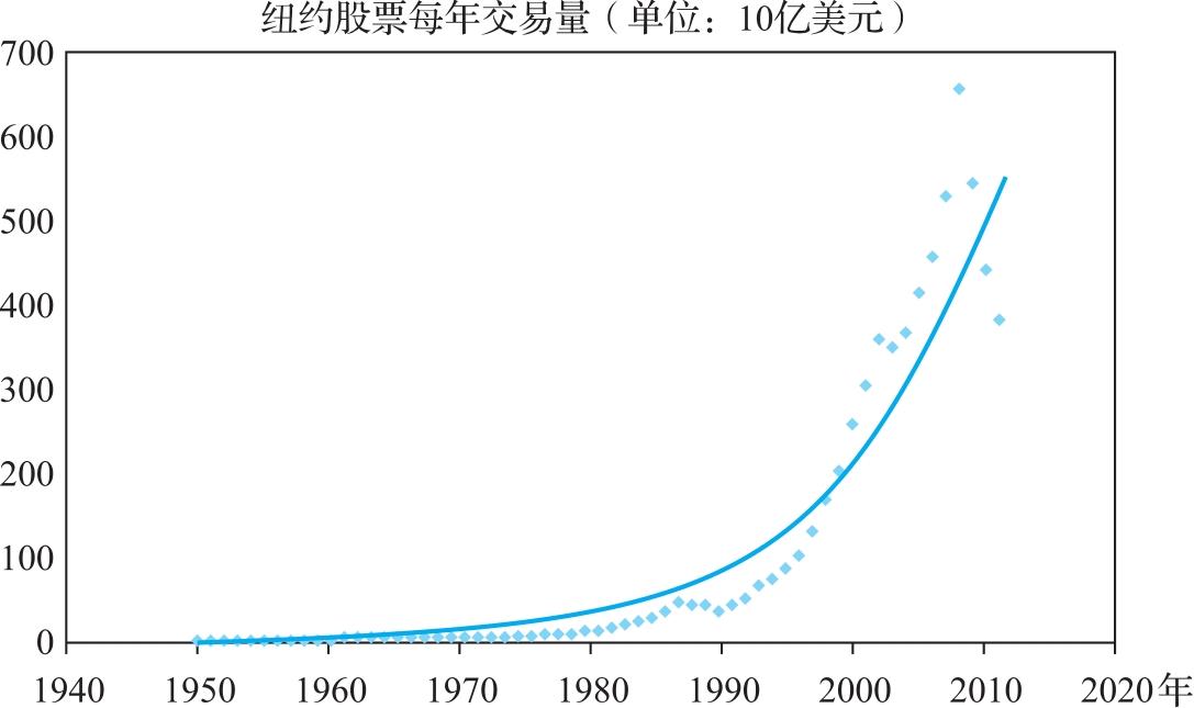 但是,大多数的人并没有意识到周遭环境的快速变化,这是问题的关键。客观数据最有说服力,从每一个重要的商业指标来看,这个世界都在快速前进(见图1-1~图l-4)。金融、社会、环境以及政治等风险都在以一种指数级的方式快速变化。