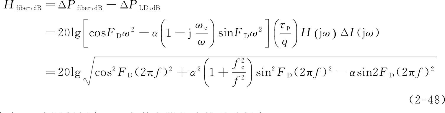 则由式(2-46)和式(2-47)可知,光纤中调制响应的传递函数为