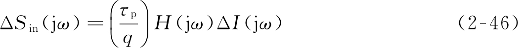 化简虚部j,则半导体激光器在小信号调制下的传递函数为式(2-42),其中 P 1 为小信号输出与输入比值,是因变量: