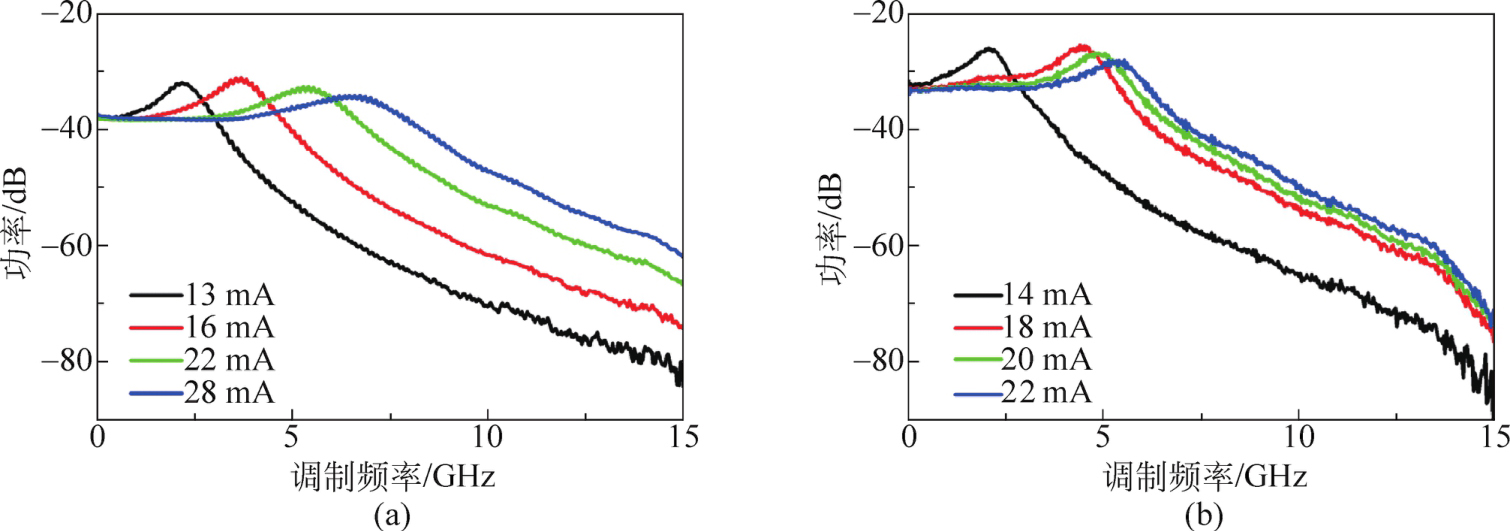 图2-14 半导体激光器芯片不同偏置电流下的频率响应曲线