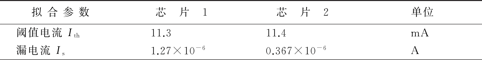 通过拟合,得到半导体激光器芯片1的参数见表2-3,半导体激光器芯片2的参数见表2-4。