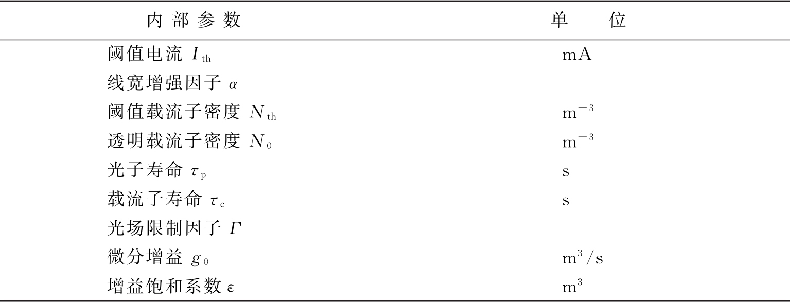 从上述式子可以看出,混合集成混沌半导体激光器的速率方程中包含许多半导体激光器的内部参数,见表2-1,需要将其提取出来。
