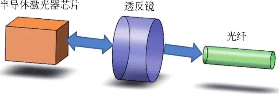 图2-8所示为基于光反馈的短腔混合集成混沌半导体激光器示意图,半导体激光器芯片采用DFB激光器芯片,透反镜对光部分透射、部分反射。半导体激光器芯片发射的部分激光经过透反镜的反射作用回到芯片内部,对其进行扰动以产生混沌激光,另一部分激光经过透反镜的透射作用耦合进入光纤中,产生的混沌激光最终由尾纤输出。