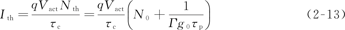 由于半导体激光器在偏置电流等于阈值电流时满足式(2-6)和式(2-8),则可以推出以下关系式: