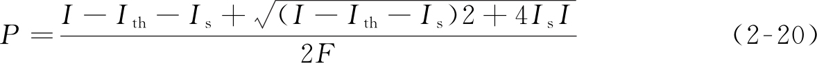 式(2-20)即半导体激光器稳态时的 P-I 曲线满足的线性方程。从 P-I 曲线中,可以得到半导体激光器的阈值电流、微分量子效率和漏电流,而阈值电流和漏电流又分别满足式(2-13)和式(2-17)。