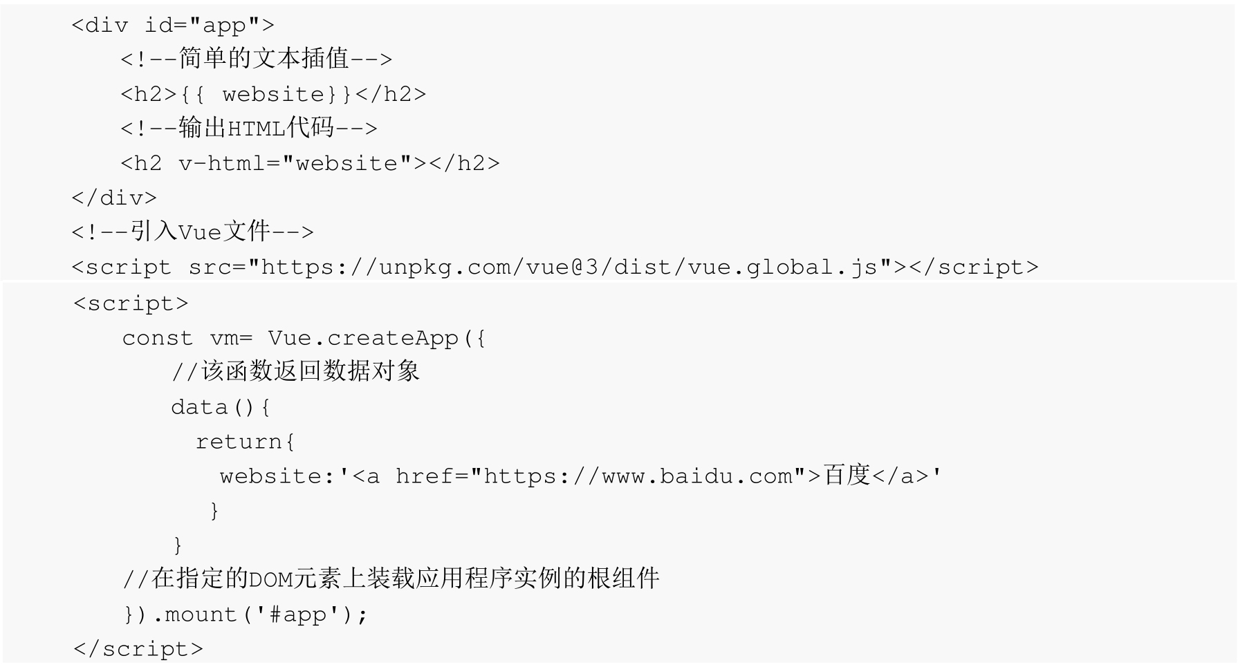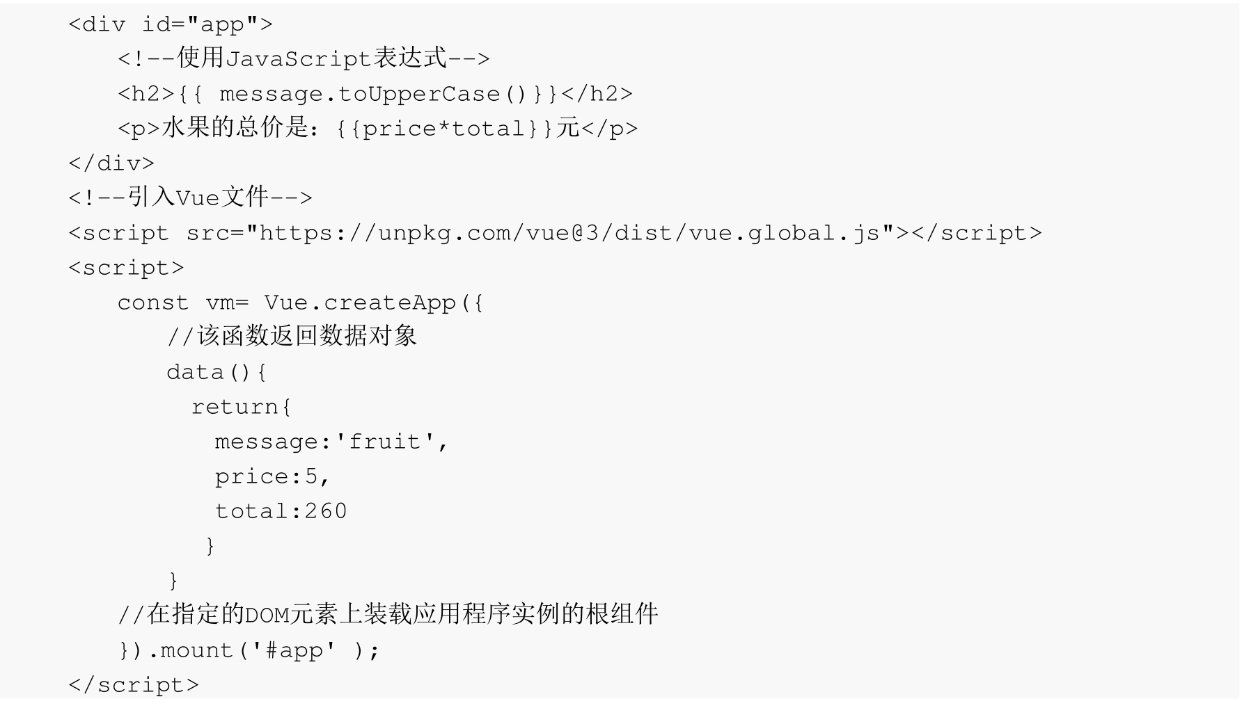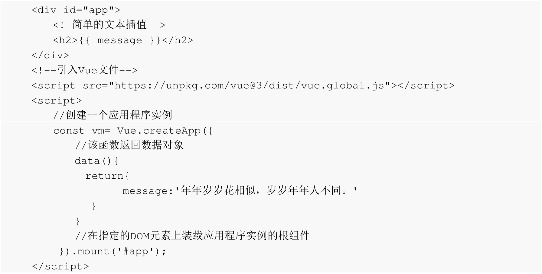 应用程序实例创建完成后,就需要通过插值进行数据绑定。本节介绍插值的3种方式。