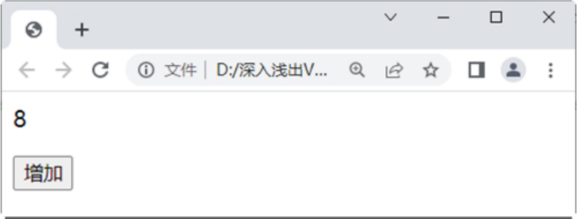 在Chrome浏览器中运行程序,多次单击“增加”按钮,可以发现每次单击num值自增1,结果如图3-2所示。