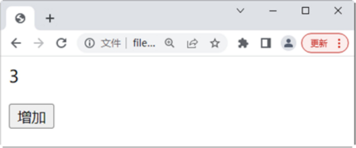 在Chrome浏览器中运行程序,单击一次“增加”按钮,可以发现num值自增2,结果如图3-3所示。