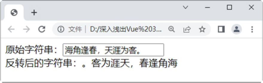 在Chrome浏览器中运行程序,输入框下面会显示对象的反转内容,效果如图3-5所示。