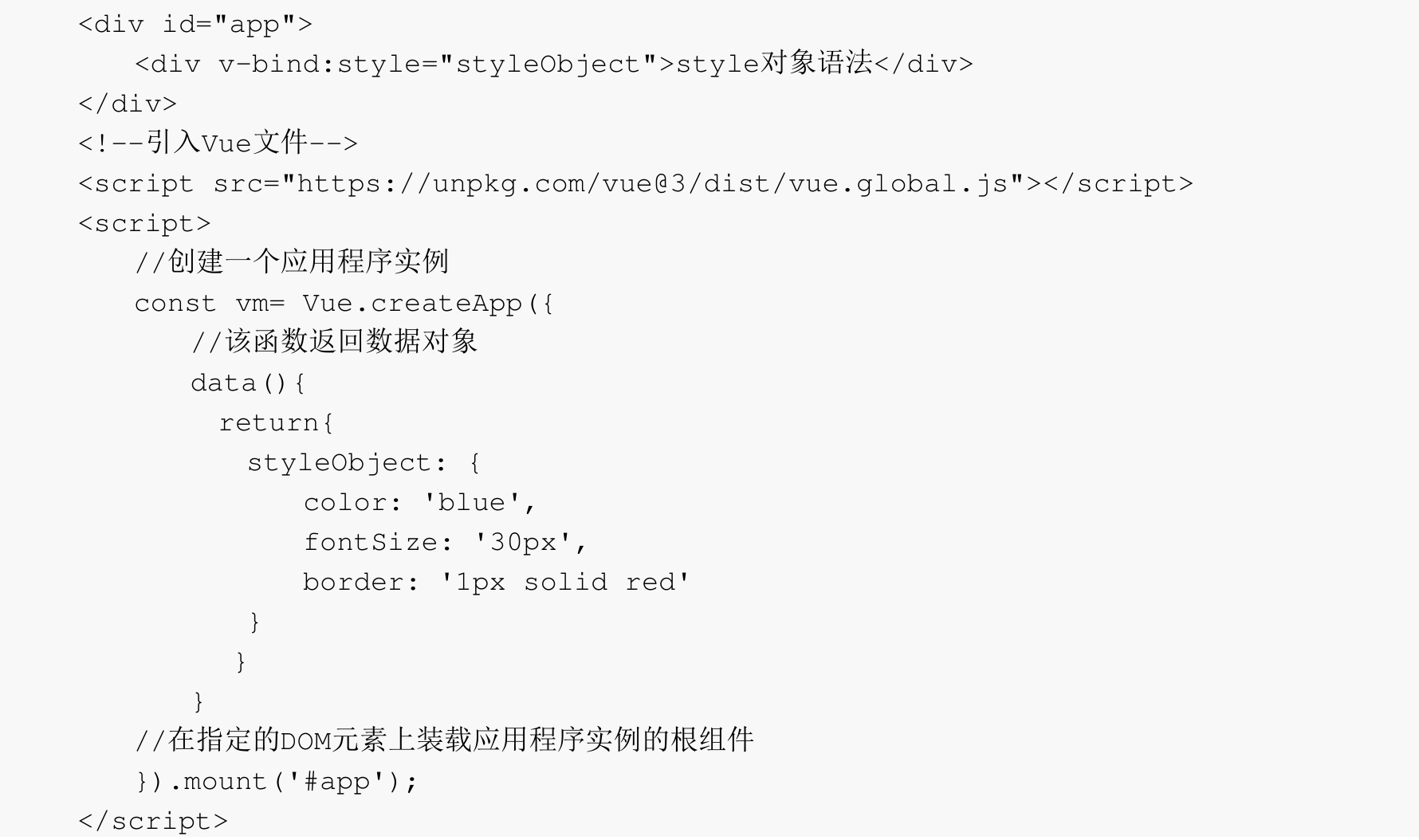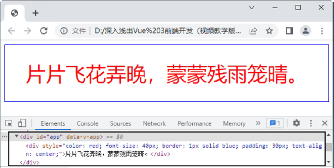 与使用属性为元素设置class样式相同,在Vue中也可以使用对象的方式为元素设置style样式。