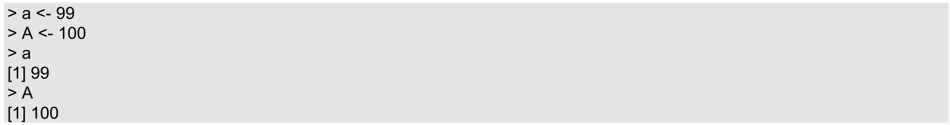 (1)R语言本身区分大小写,因此a和A在R语言里是两个变量。例如: