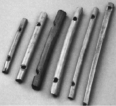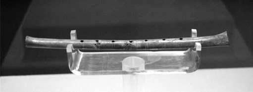 ;河南舞阳县贾湖文化遗址出土的骨笛,浙江河姆渡文化遗址留存的骨哨