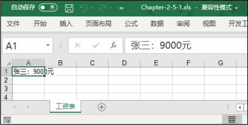第4行代码 nws.write(0,0,'张三:9000元') ,表示在新建的工作表中的第0行第0列,也就是A1单元格中写入值“张三:9000元”。