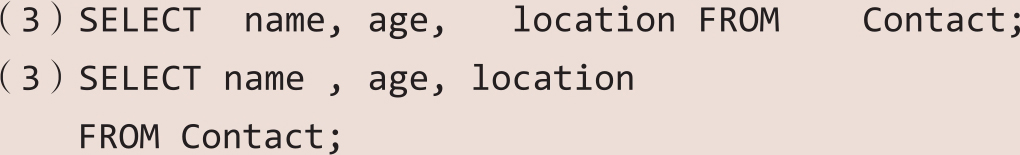 但这并非MySQL接受的唯一书写格式,还可以在其中插入更多的空格,甚至换行也不影响执行结果: