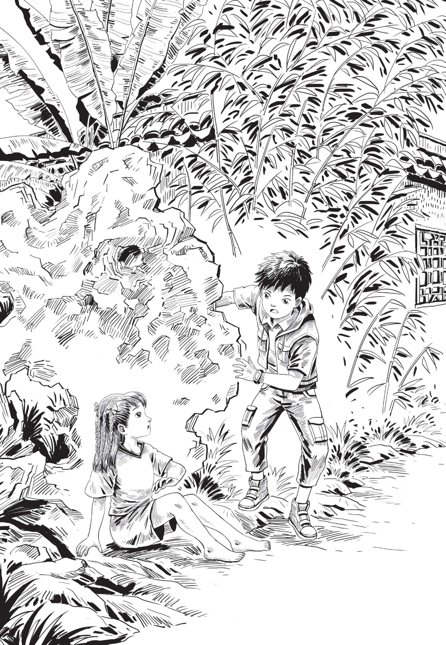 我们刚刚藏好,张小茂已数到五百,他要开始找我们了。虽然他的眼睛没法看,但他的耳朵可没闲着,在听着我和桐桐的动静呢。他四处看了看,大致判断出了桐桐的藏身之处,然后小心翼翼地破解我们的“阵法”:搬掉埋伏在紫薇树下的石块,把它移到月季花旁,找出桐桐藏在紫藤枝间的发卡,再捡起一个小石块,向芭蕉树的方向扔去。这叫“投石问路”,要是那里有老鼠或鸟雀,就会被惊起,带动其他装置。然后,他向着桐桐藏身的方向跑去。我屏住气,轻轻地后退,准备悄悄跑回“窝”。可是,在我转身要出箭竹丛时,好像踩到了什么。