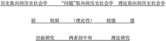 在这个谱系中,理论取向的历史社会学侧重于对人类社会结构和社会发展理论的演绎与归纳,历史取向的历史社会学侧重于研究人类社会之间的差别和各个社会内部随着时间流逝而发生的变化,处于两者之间的“问题”研究,其理论性或强或弱,都是对历史经验与社会理论的“中和”研究。这些研究取向相互补充,共同构成历史社会学的学科范畴。