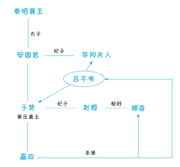 吕不韦希望做大买卖,于是投资子楚。他不但把美女赵姬献给子楚做老婆,还在关键时刻帮助子楚逃回秦国,并讨好安国君最宠爱的妃子华阳夫人,使安国君在成为秦孝文王的短短3天的执政期间,立子楚为太子。在子楚即位为秦王(秦庄襄王)后,赵国为了示好(主要是怕挨秦国揍),送回了子楚的妻儿——赵姬和嬴政。未来的秦始皇嬴政,就是子楚和赵姬的儿子。吕不韦因为帮助子楚逃离赵国并登上王位,成了秦国最大的功臣,因此,他以一个“投资成功”的外国商人身份,成为秦国的丞相。