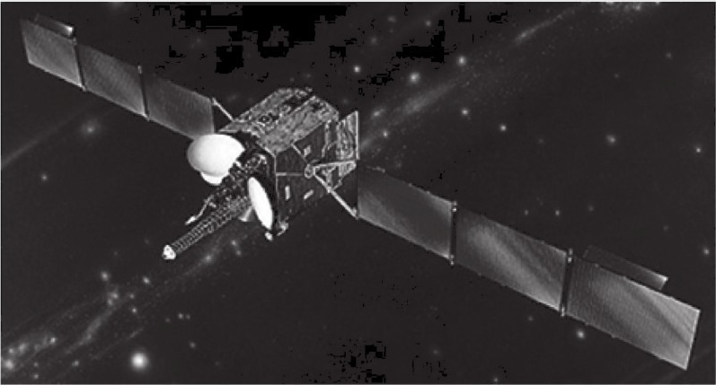 20世纪80年代,Milstar系统开始启动建设,共发展了两代,目前在轨的均为20世纪90年代发展的第二代系统,由5颗GEO卫星组成的卫星星座,卫星的外形图如图2-1所示。该系统搭载中数据速率载荷(MDR),采用上行频率44GHz(Q频段),下行20GHz(Ka频段)。