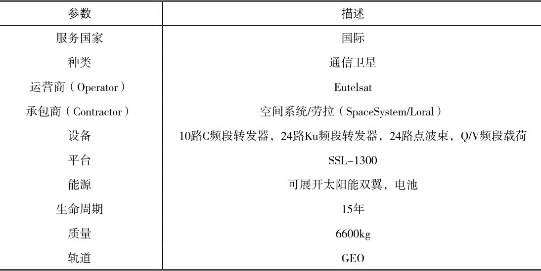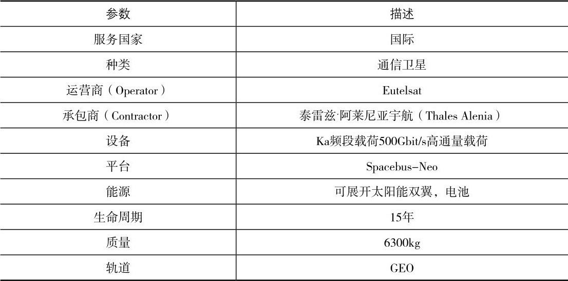 表2-4 Euletsat 65 West A卫星主要参数指标