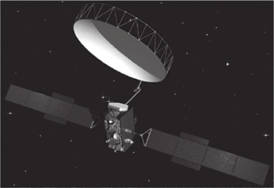 2010年,AEHF系统启动部署,目前在轨4颗。作为Milstar系统的继续,AEHF系统同样主要工作于Q/V频段,采用扩跳频、捷变、可移动波束和调零天线技术等,为关键战略和战术部队提供抗干扰、防侦听、防截获、高保密和高生存能力的全球卫星通信。AEHF系统搭载了Q频段星地载荷,其中LDR/MDR/XDR载荷下行均工作在Ka频段,频率为20.2~21.2GHz;上行则工作在Q频段,频率为43.5~45.5GHz。AEHF-1卫星的外形图如图2-2所示。