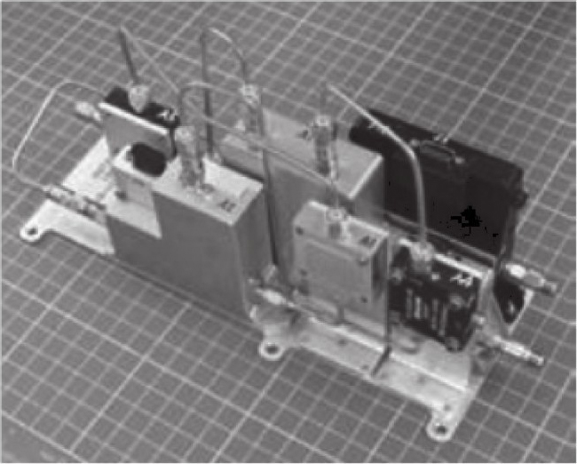 Q/V频段试验载荷的主要任务是验证Q/V频段的信号传输性能,特别将针对雨衰情况的性能和链路自适应调整技术进行分析,同时在法属瓜德鲁普群岛建立了配套的地面站,也将对地面段相应技术开展验证。Q/V频段试验载荷包括1路Q/V频段的转发器和1个Q频段的信标机,外形图如图2-7所示。Q/V频段转发器采用双变频设计,允许在中频加入新的信号,从而上变频至Q频段作为信标信号输出。该转发器的核心硬件包括V/X频段的接收机、X/Q频段的上变频器、Q频段的固态放大器、Q/V频段的双工器、WR22波导以及混频器等。