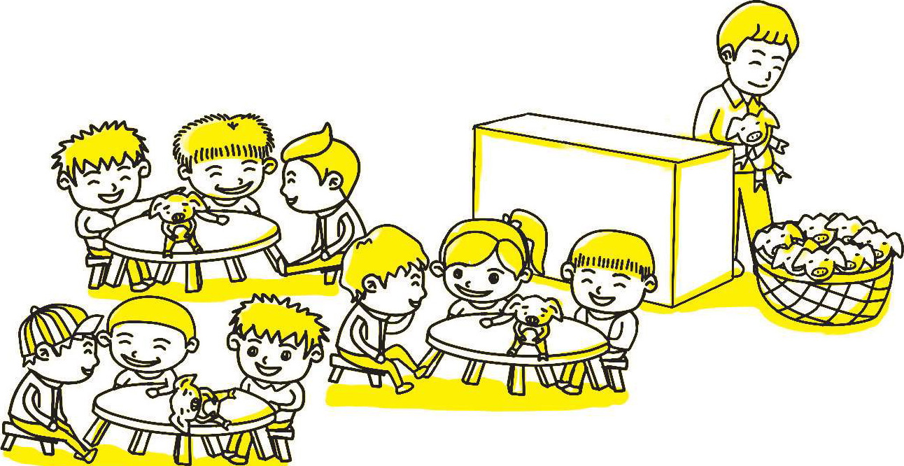 题目说:“老师和每个小朋友最后做出来的‘猪娃娃’的数量一样多”。那么,总人数×每个人做的“猪娃娃”的数量=总共做的“猪娃娃”的数量。