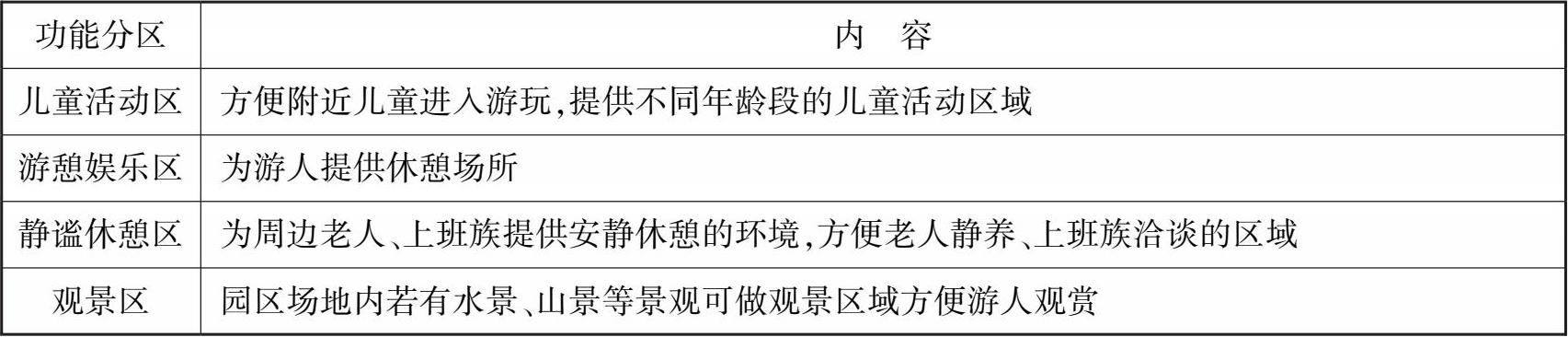 表 2.16 游园功能分区
