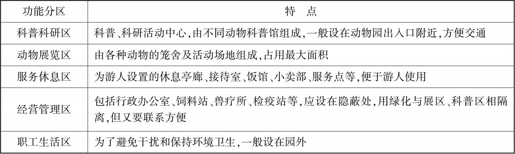 表 2.11 动物园功能分区
