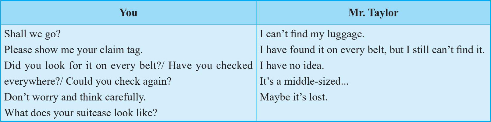 Dialogue 2 Bill Wilson is talking with the local guide, He Li, about his lost luggage at the Shanghai Pudong International Airport.