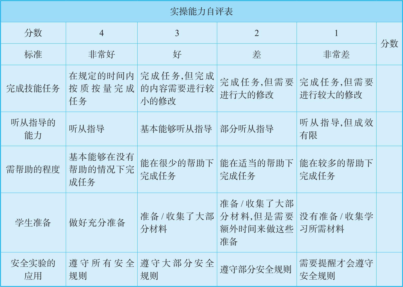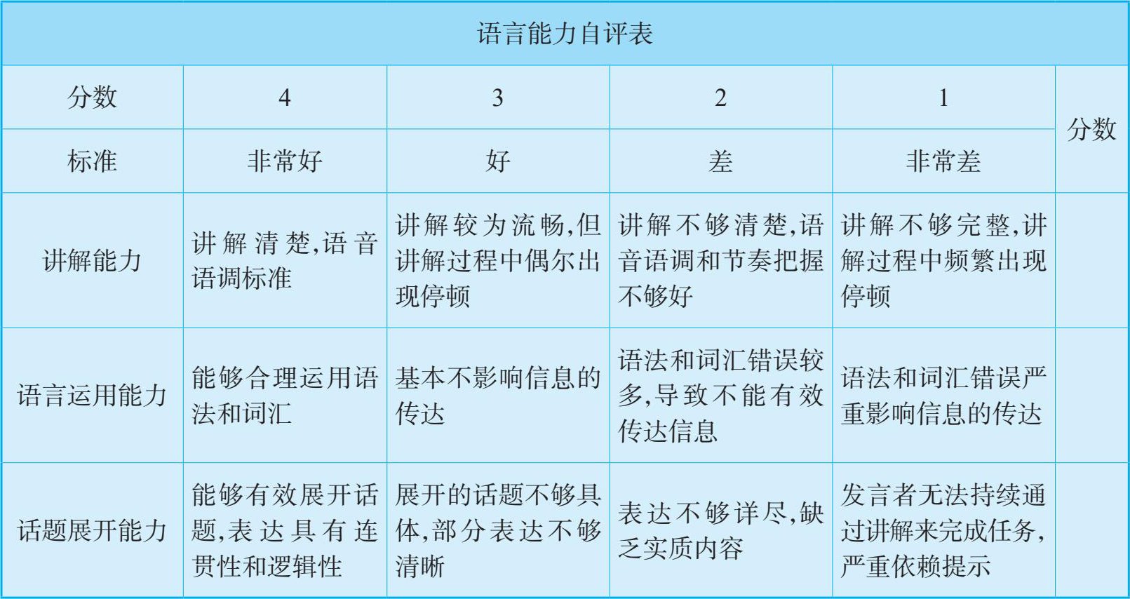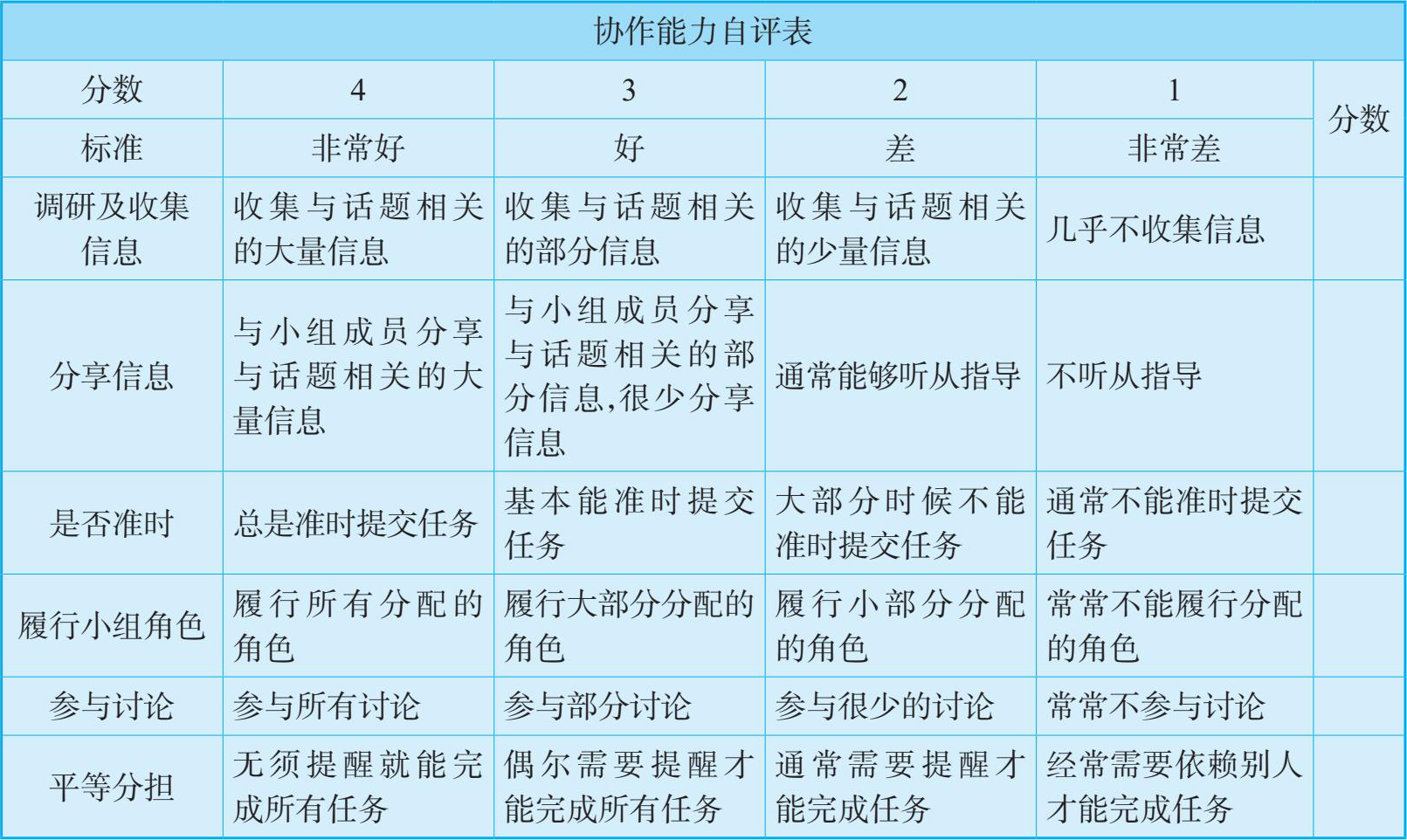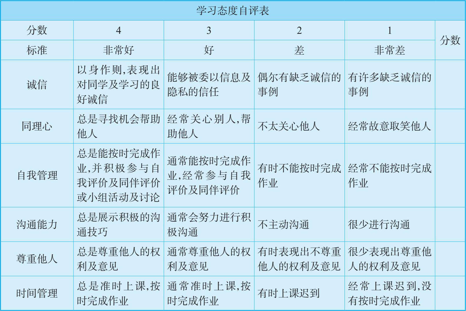 语言能力、实操能力、协作能力、学习态度自我评估表