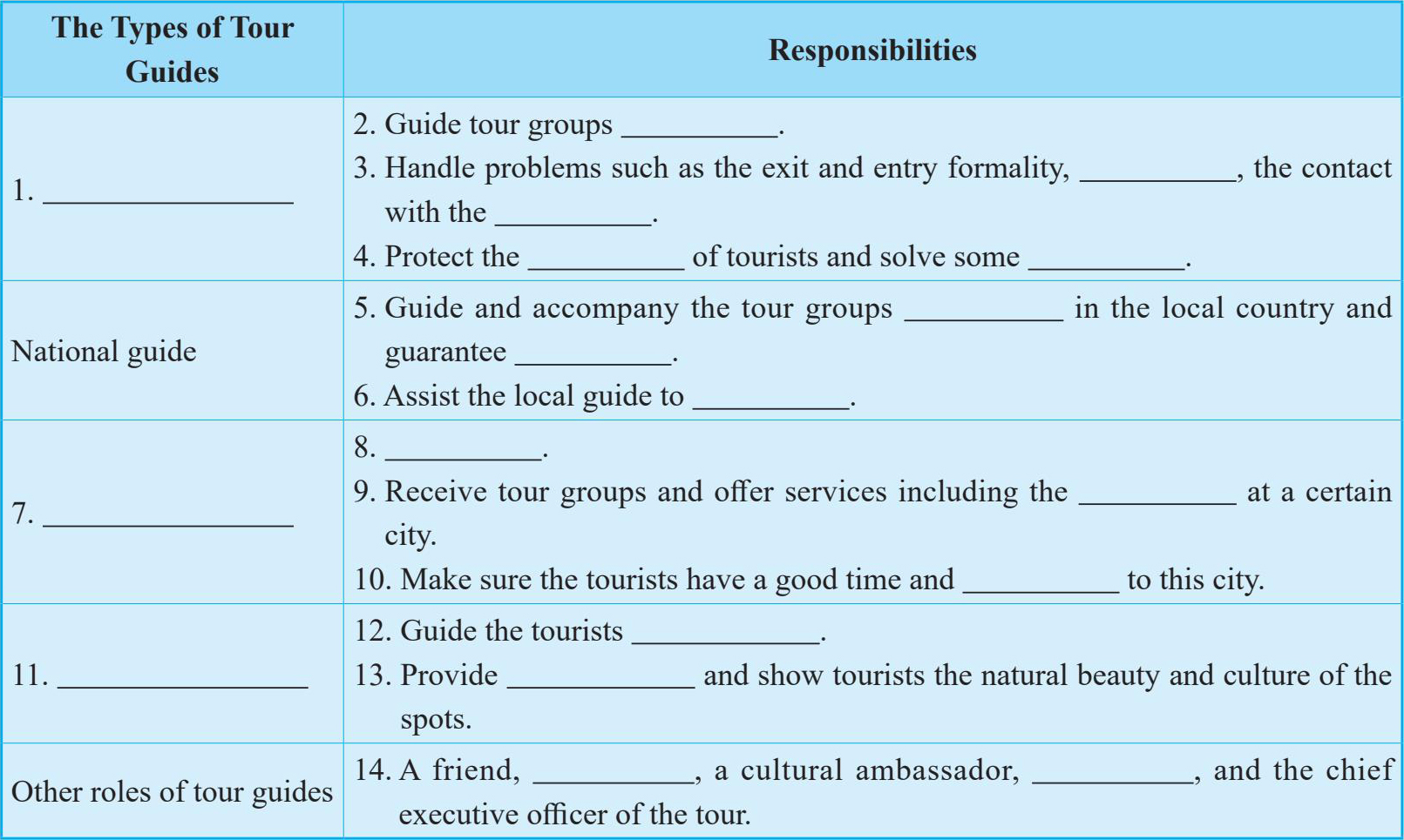 2. How much do you know about the job of a tour guide? What should he/she do?