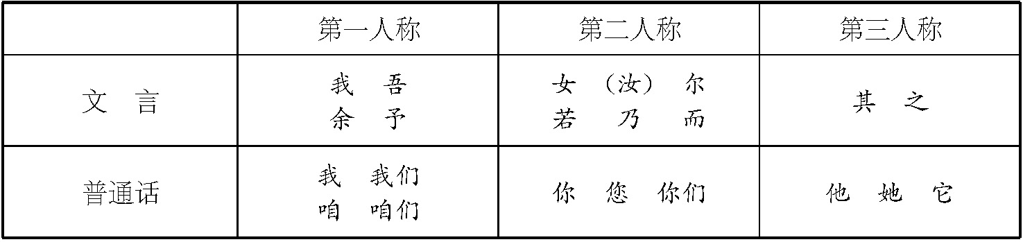 第二,代词基本上更换了。下边将常见的文言代词和普通话加以比较: