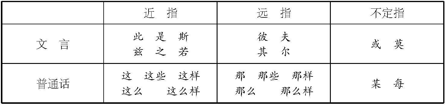 普通话表示不定指,多不用指示代词。常用“有”接名词,如“有人”、“有一天”;或用“没有”接疑问代词,如“没有谁”、“没有哪个”。