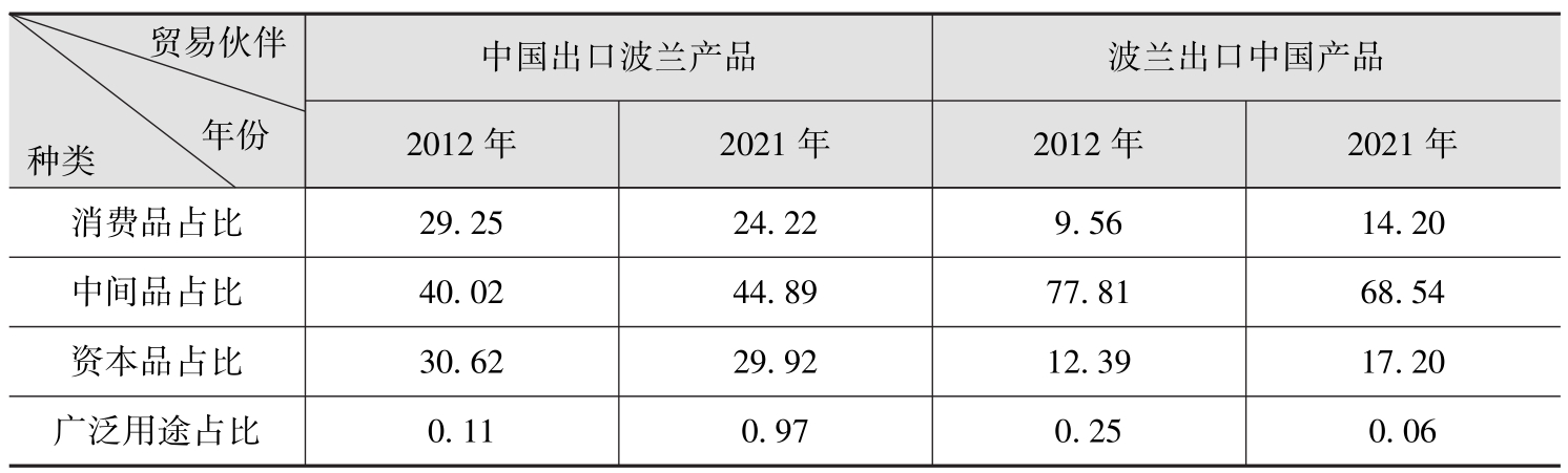 表1.1 中国—波兰双边货物出口贸易结构(按经济大类) 单位:%