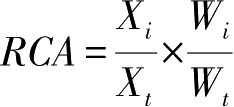 国所有产品的出口值。樊纲(2006)将显性比较优势(RCA)作为衡量一国出口产品结构的指标,某种产品出口的比较优势定义为: