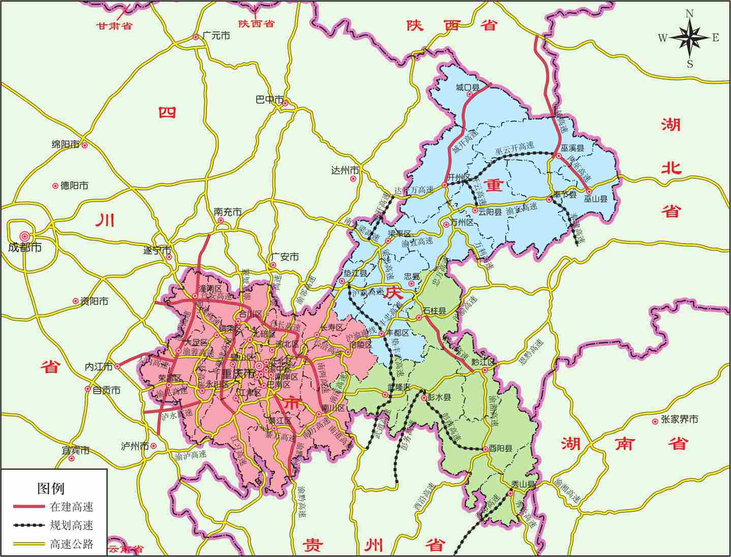 高速公路网中有包茂、兰海、银昆、百银、沪蓉、沪渝等“四纵二横”经过重庆,居西南地区之首。