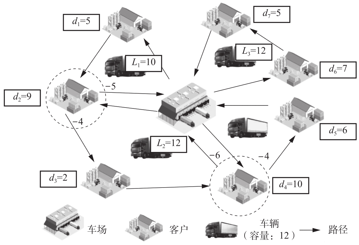①所有车辆同质,即具有相同的最大装载量、最大工作时间和车速。